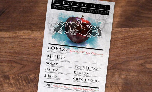 For the past two decades San Francisco's Pacific Sound and Sunset crew have been organizing some of the Bay's most legendary dance music gatherings. From outdoor events in beautiful locations, to boat parties circling Alcatraz, to proper sweaty warehouse undergrounds, this group of DJs has become synonymous with San Francisco House music. It was a great priveledge to be able to design their promotional collateral for a season.